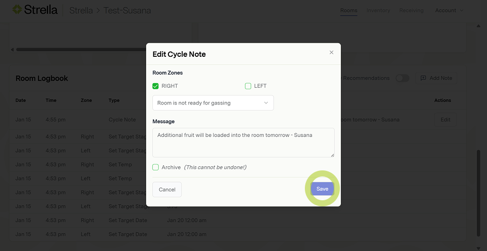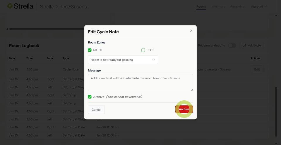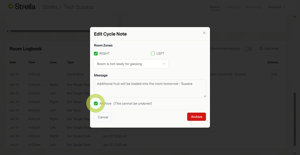 Archiving a note will remove it from the logbook. This is a good option if the note is no longer relevant, or if it was created accidentally.