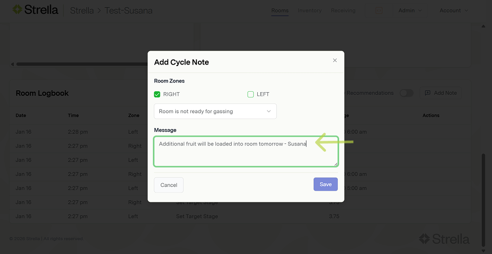 Cycle notes are a way to communicate additional information about a cycle to Strella.