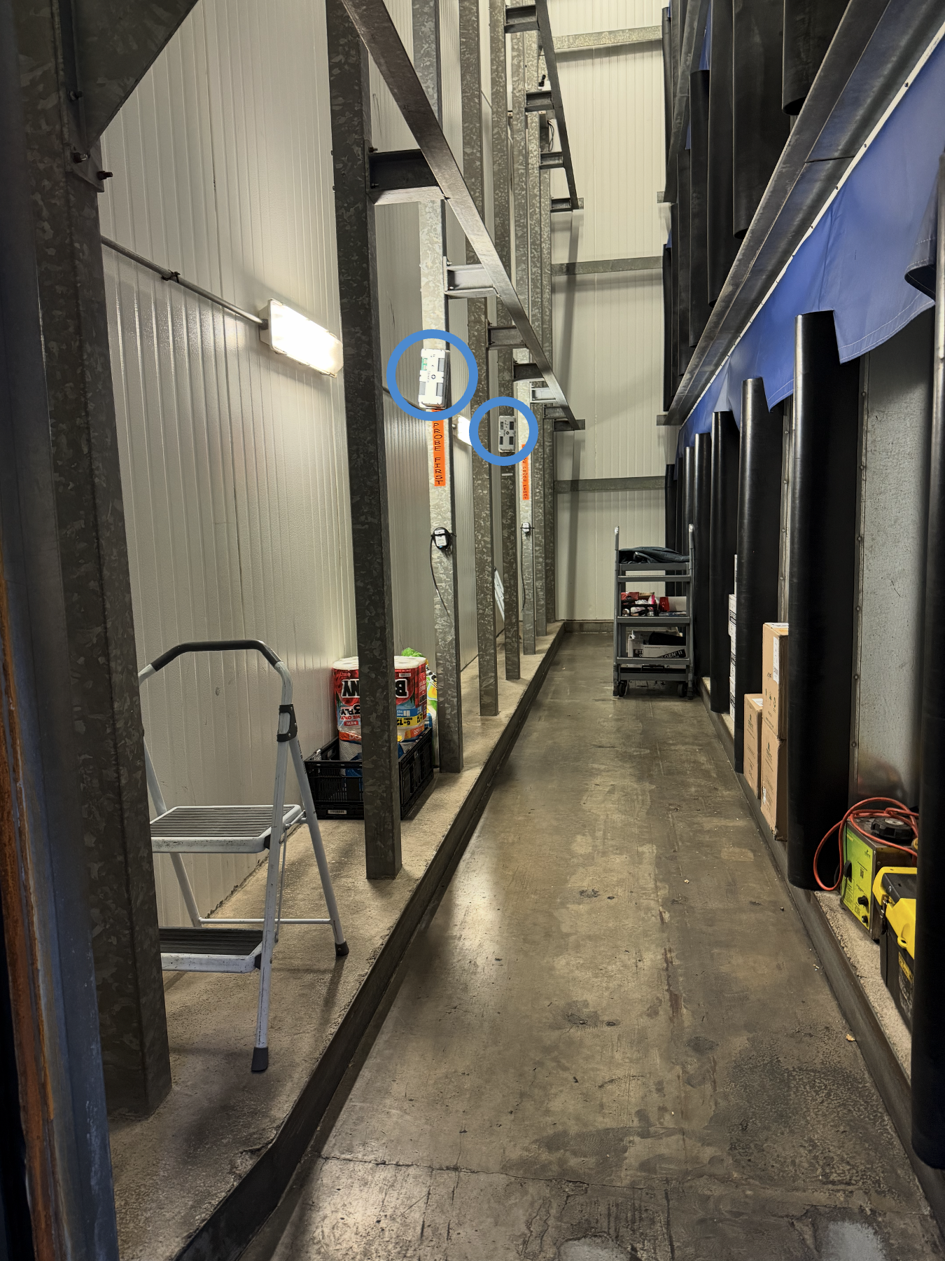 Mount devices on the back side of posts, 6 feet above the floor with the device ID sticker facing up and the P2 port facing the floor.