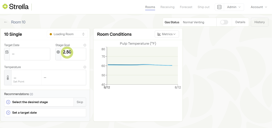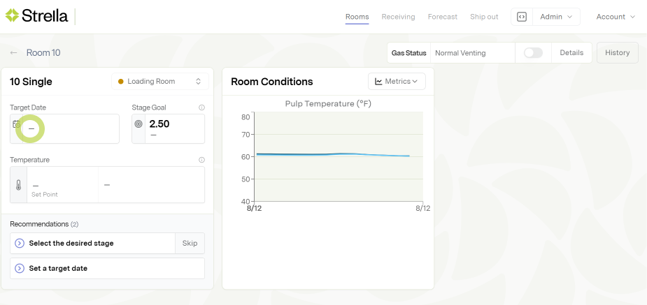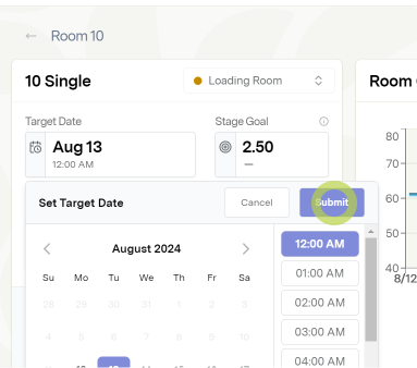 Select a Target Date and Stage Goal for each room zone. Both are editable at any point in a cycle.
