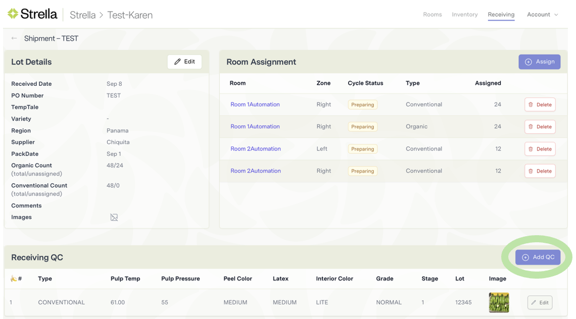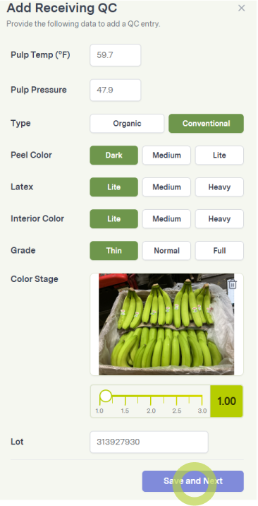 The ripening model makes recommendations based on receiving QC data. Complete this step after receiving your shipment.